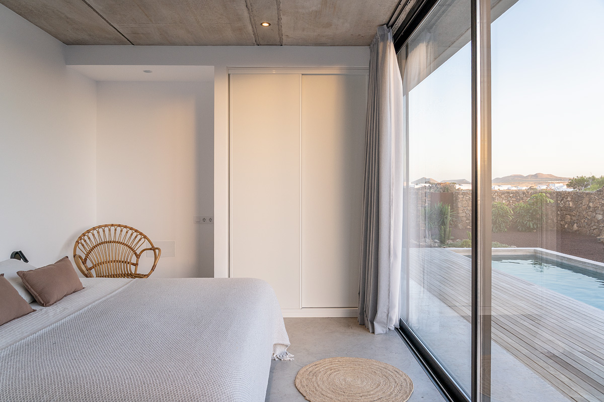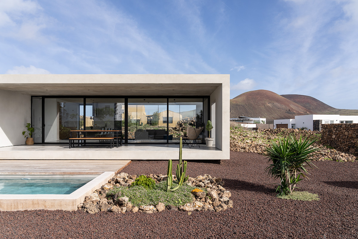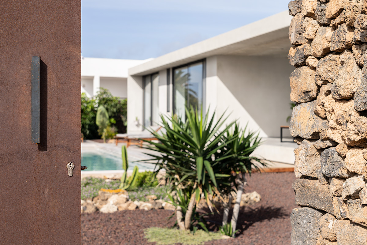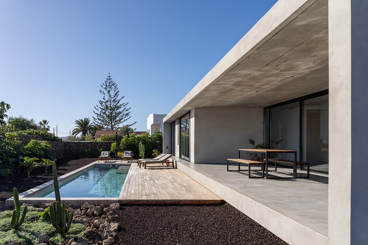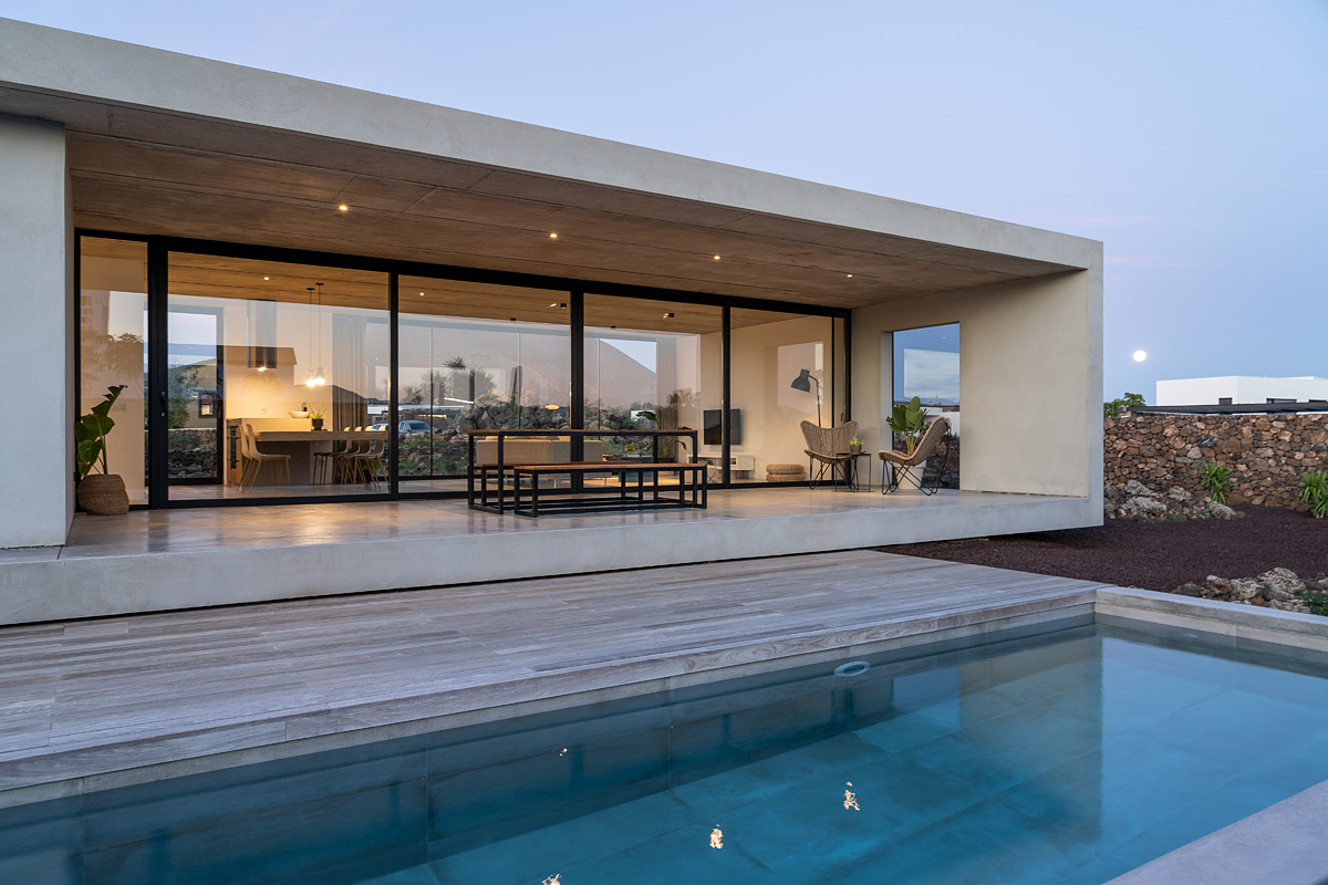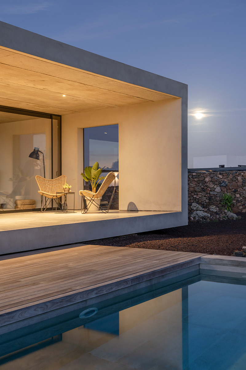 New build holiday house in Lajares (2025). Located in an exclusive zone of Lajares right under the volcano ‘Calderón Hondo’. The house consists of three bedrooms, each one with an en suite bathroom, storage room, kitchen, living room. Wooden deck with outdoor shower and heated pool (27 ºC • 11 x 2,5 m). Minimalist design with extensive glazing providing great views to one of the most beautiful landscapes of the north of Fuerteventura.