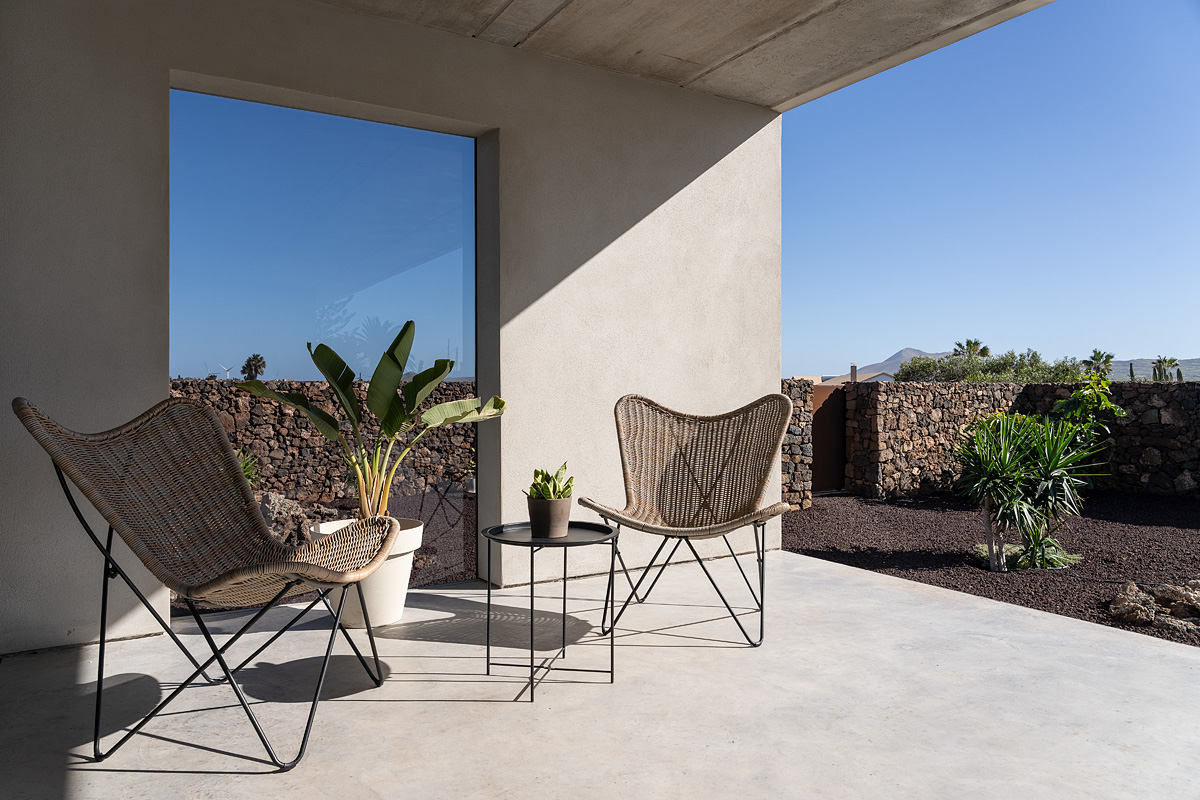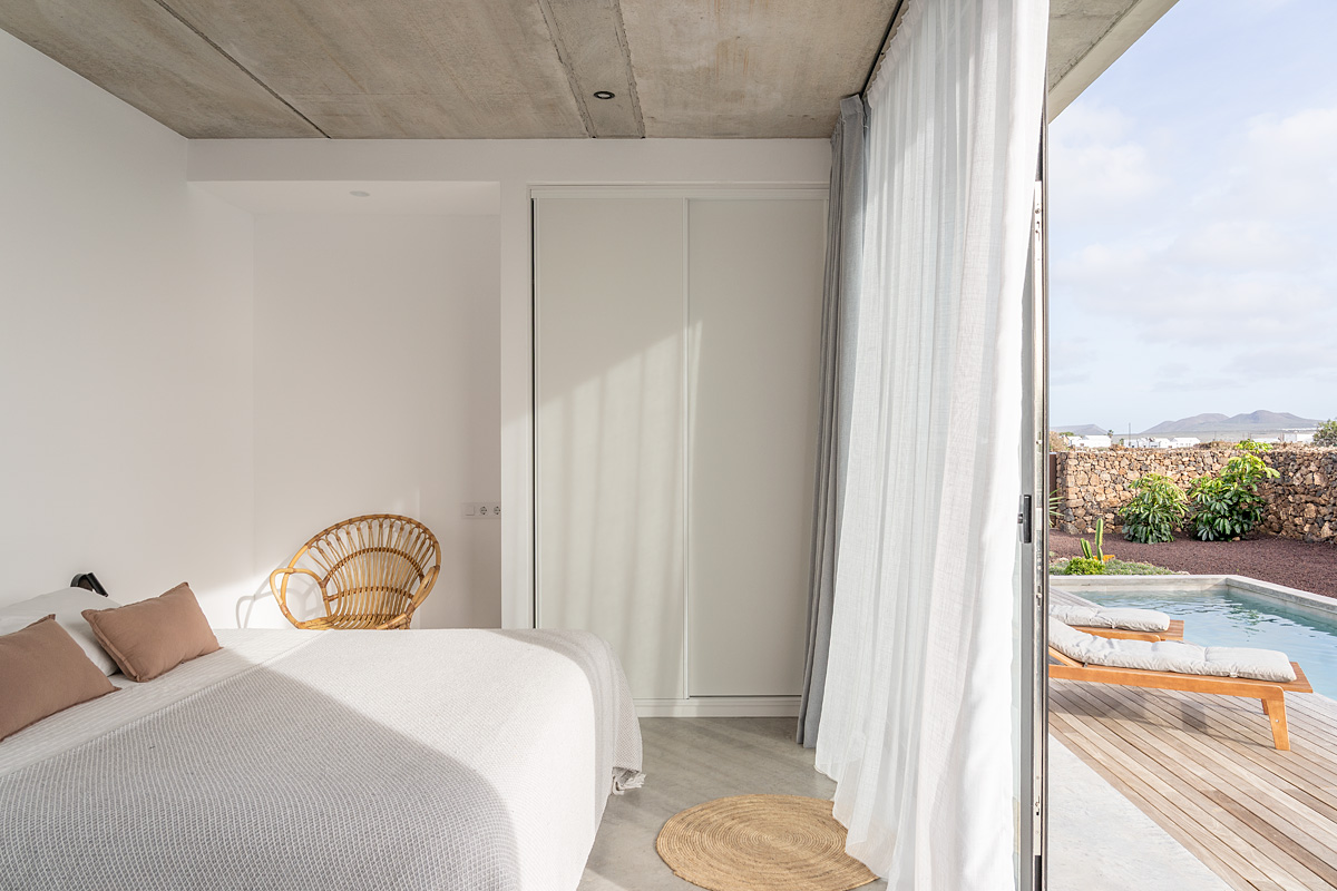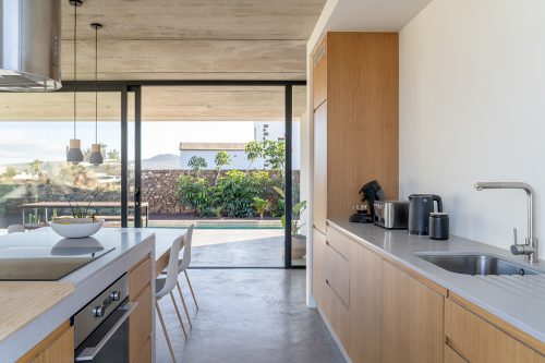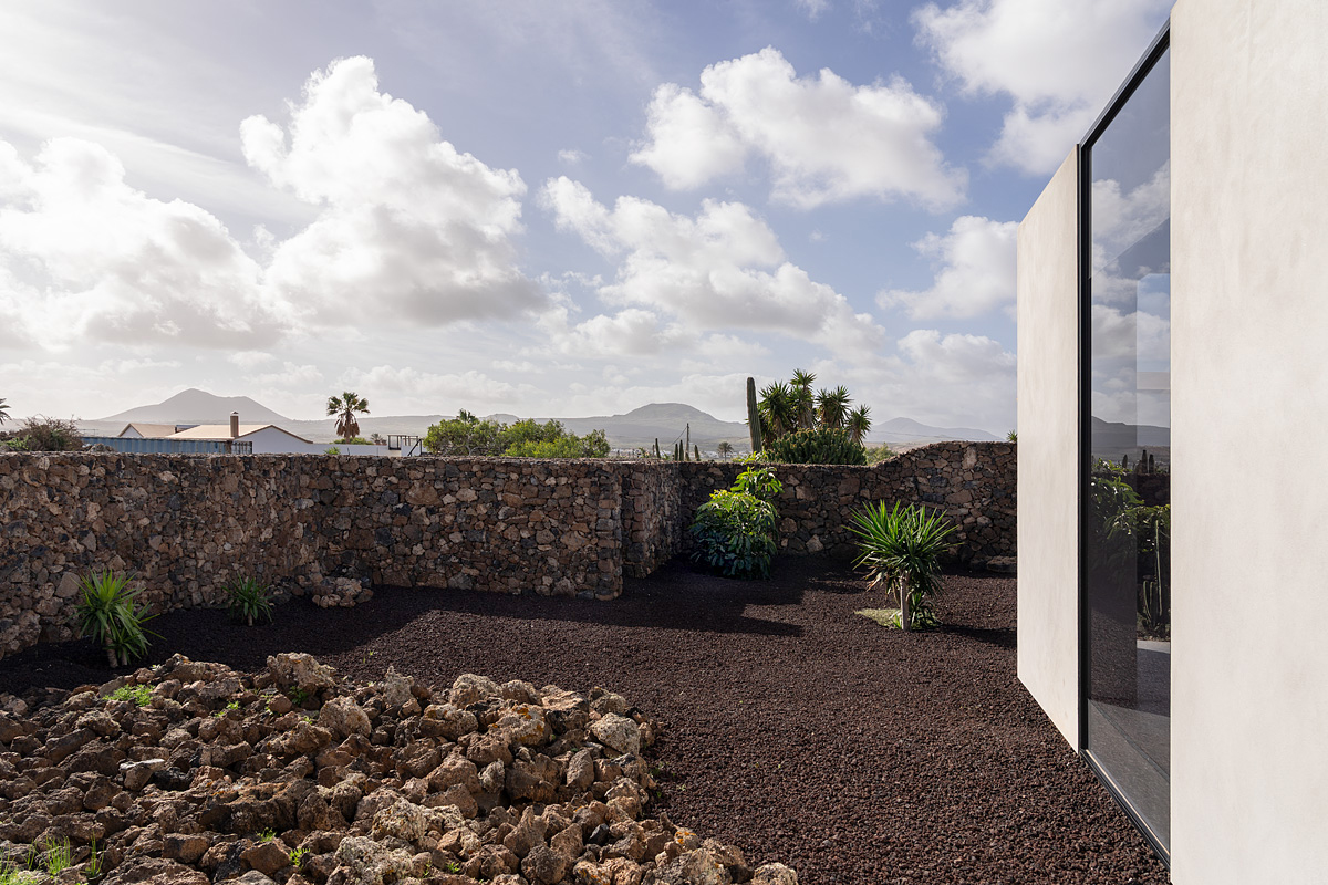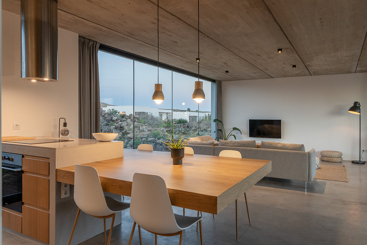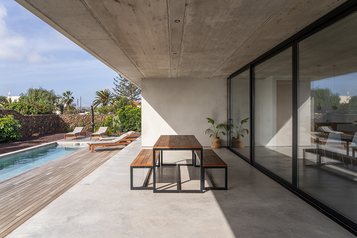 New build holiday house in Lajares (2025). Located in an exclusive zone of Lajares right under the volcano ‘Calderón Hondo’. The house consists of three bedrooms, each one with an en suite bathroom, storage room, kitchen, living room. Wooden deck with outdoor shower and heated pool (27 ºC • 11 x 2,5 m). Minimalist design with extensive glazing providing great views to one of the most beautiful landscapes of the north of Fuerteventura.