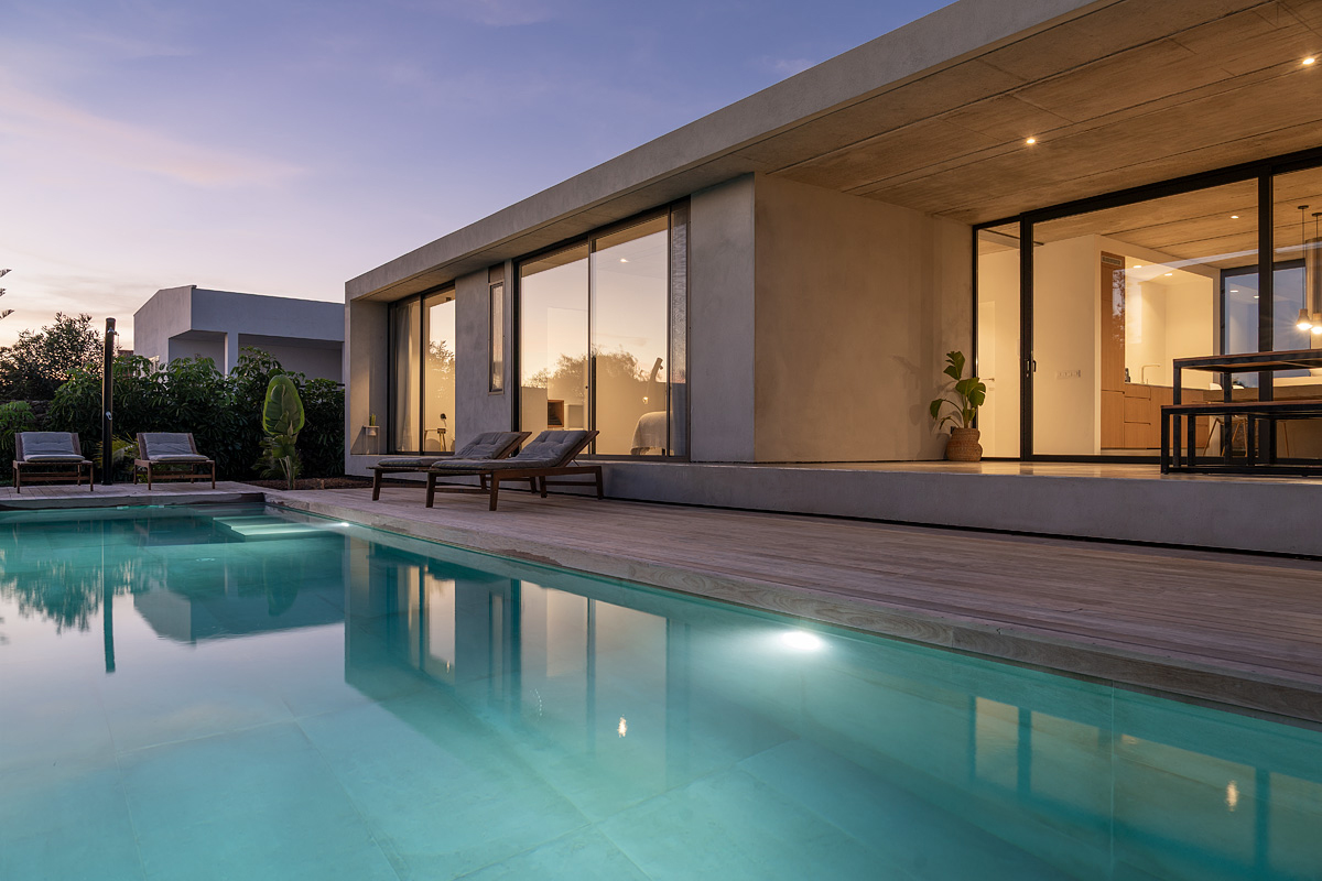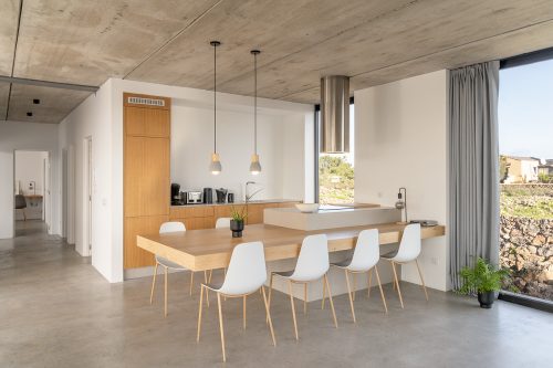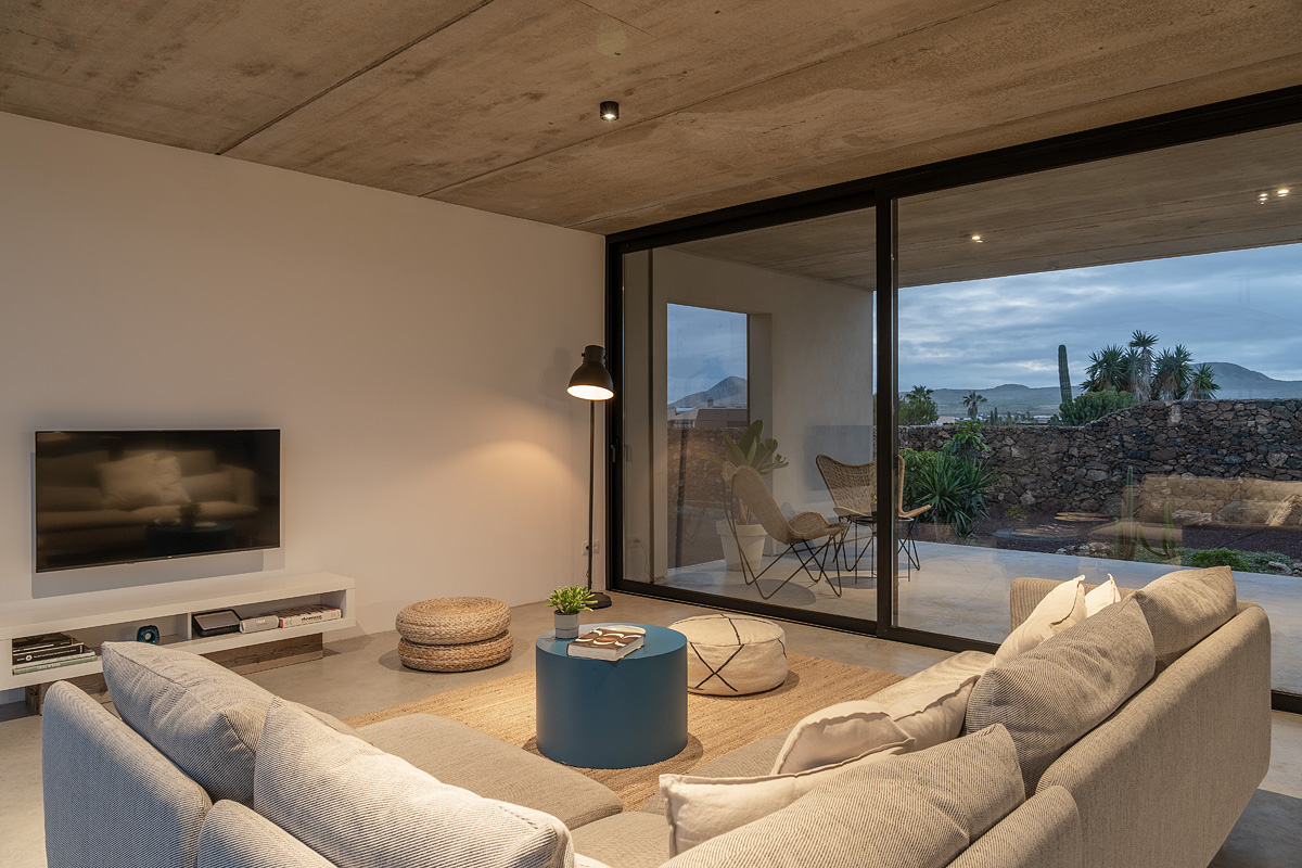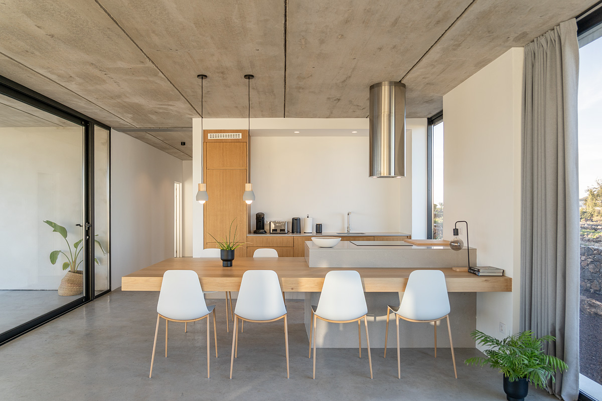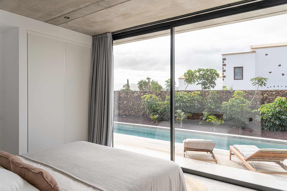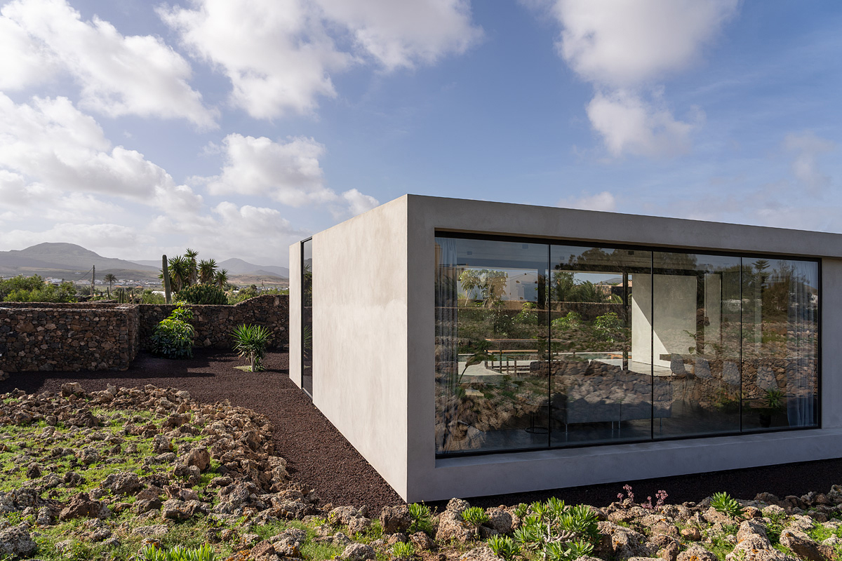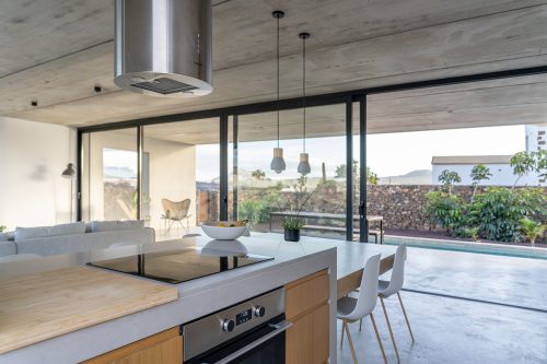 New build holiday house in Lajares (2025). Located in an exclusive zone of Lajares right under the volcano ‘Calderón Hondo’. The house consists of three bedrooms, each one with an en suite bathroom, storage room, kitchen, living room. Wooden deck with outdoor shower and heated pool (27 ºC • 11 x 2,5 m). Minimalist design with extensive glazing providing great views to one of the most beautiful landscapes of the north of Fuerteventura.